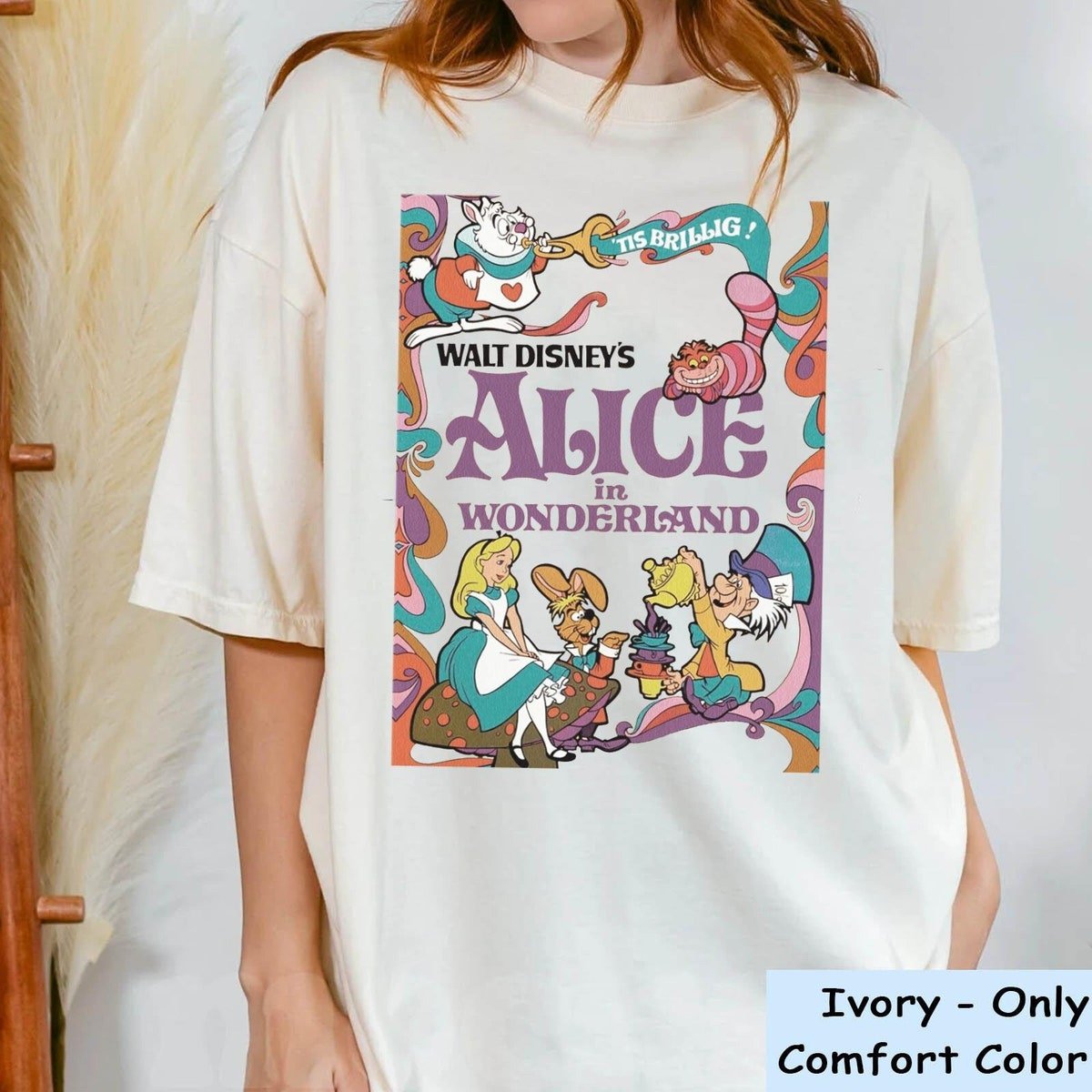 Retro 70s Alice Wonderland Shirt Cheshire Cat White Rabbit Design