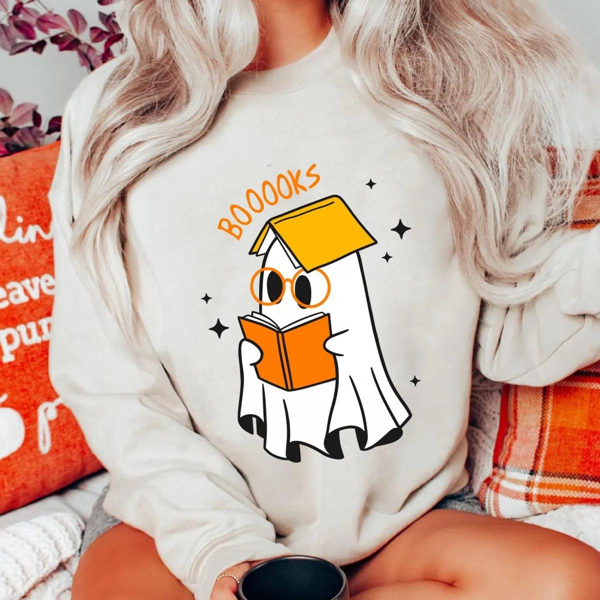 Boo Ghost With Books Halloween Shirt 1