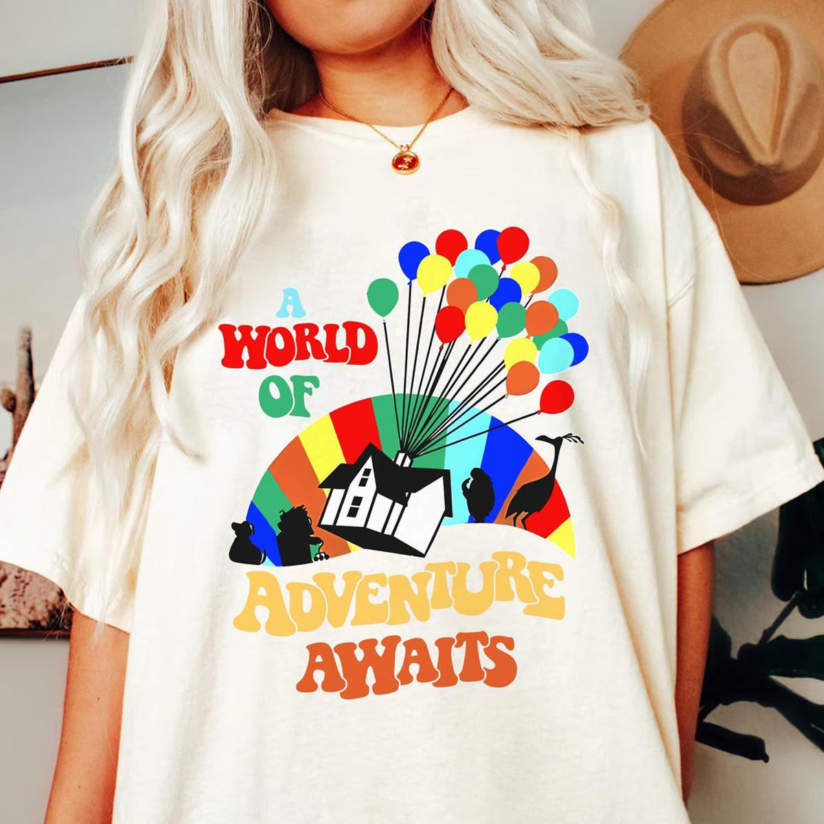 A World Of Adventure Awaits Rainbow House Balloons Shirt Up Movie Tee 1