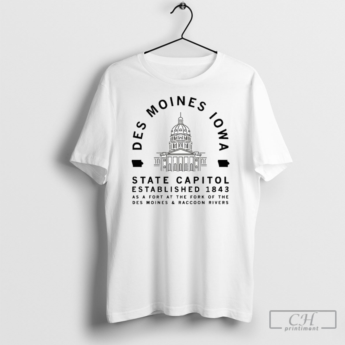 Des Moines Iowa State Capitol Minimal Est 1843 As A Fort At The Fork Of The Des Moines And Racoon Rivers Tee Shirt Sweatshirt