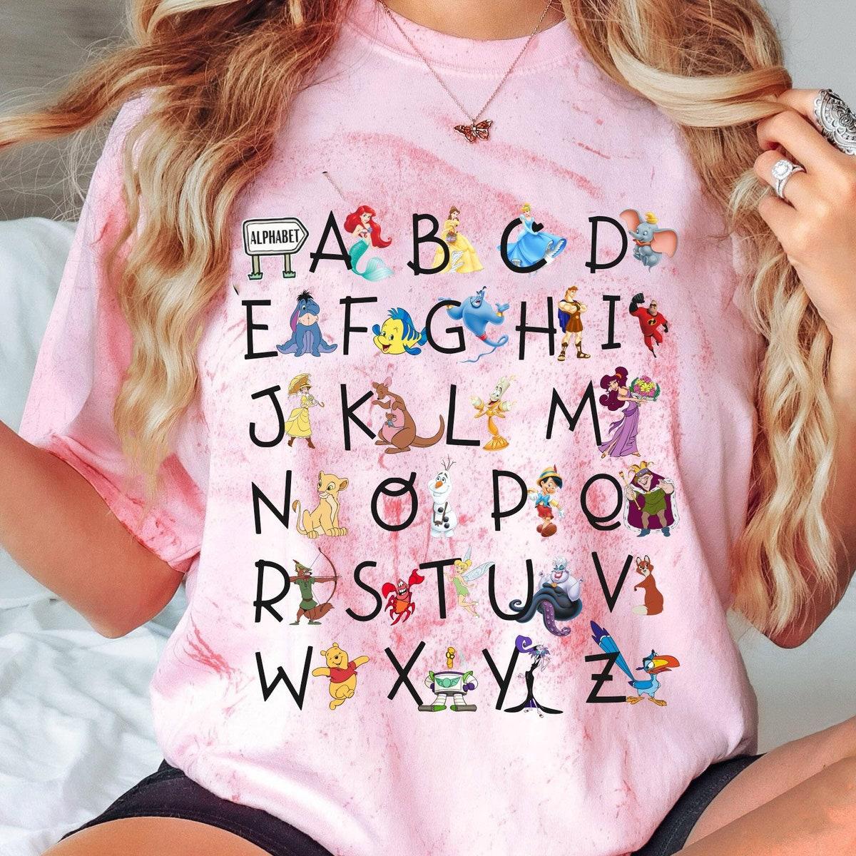 Disney Characters Alphabet Teacher Blast Kindergarten Teacher Shirt 1