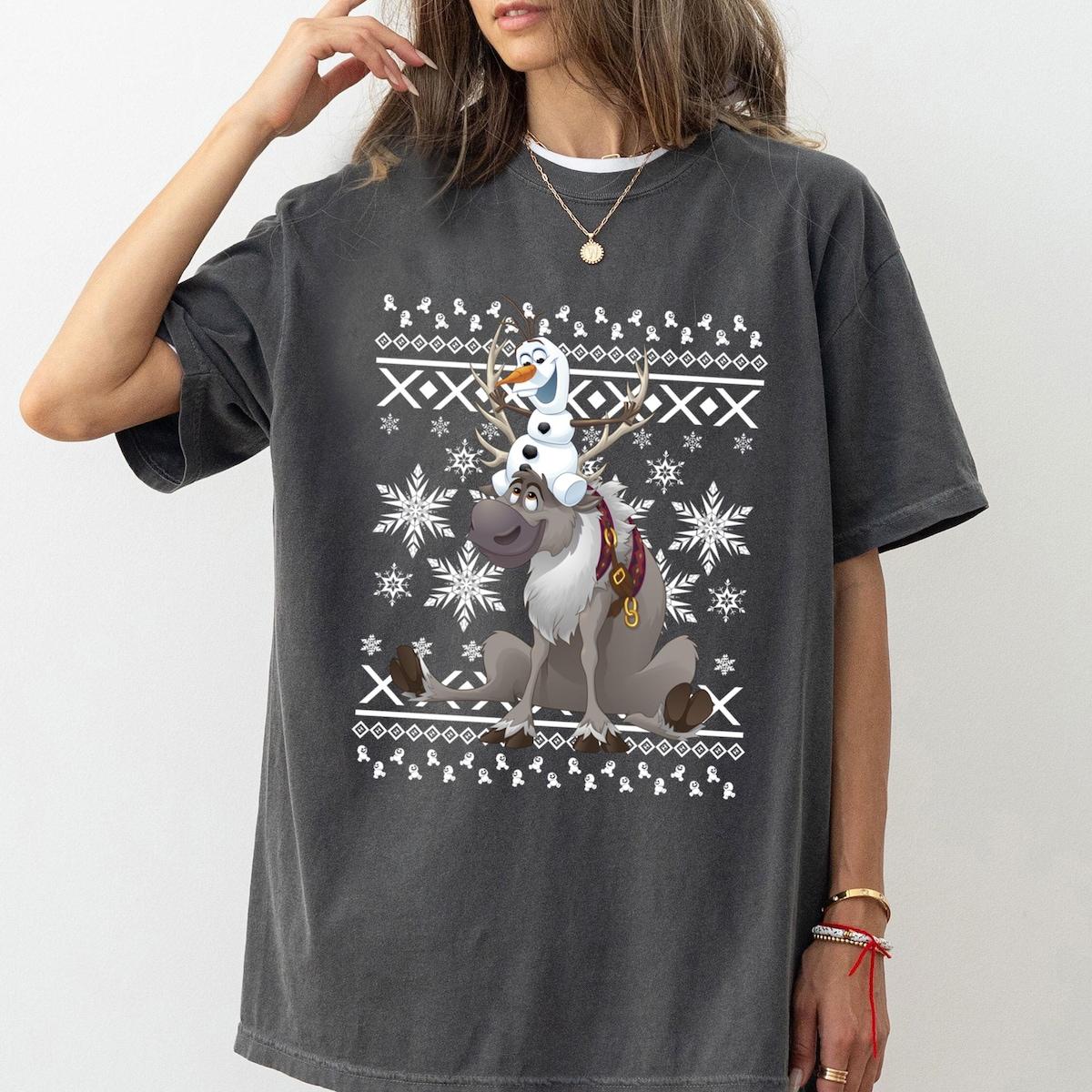 Disney Frozen Olaf Sven Riding Antlers Ugly Christmas Shirt 1
