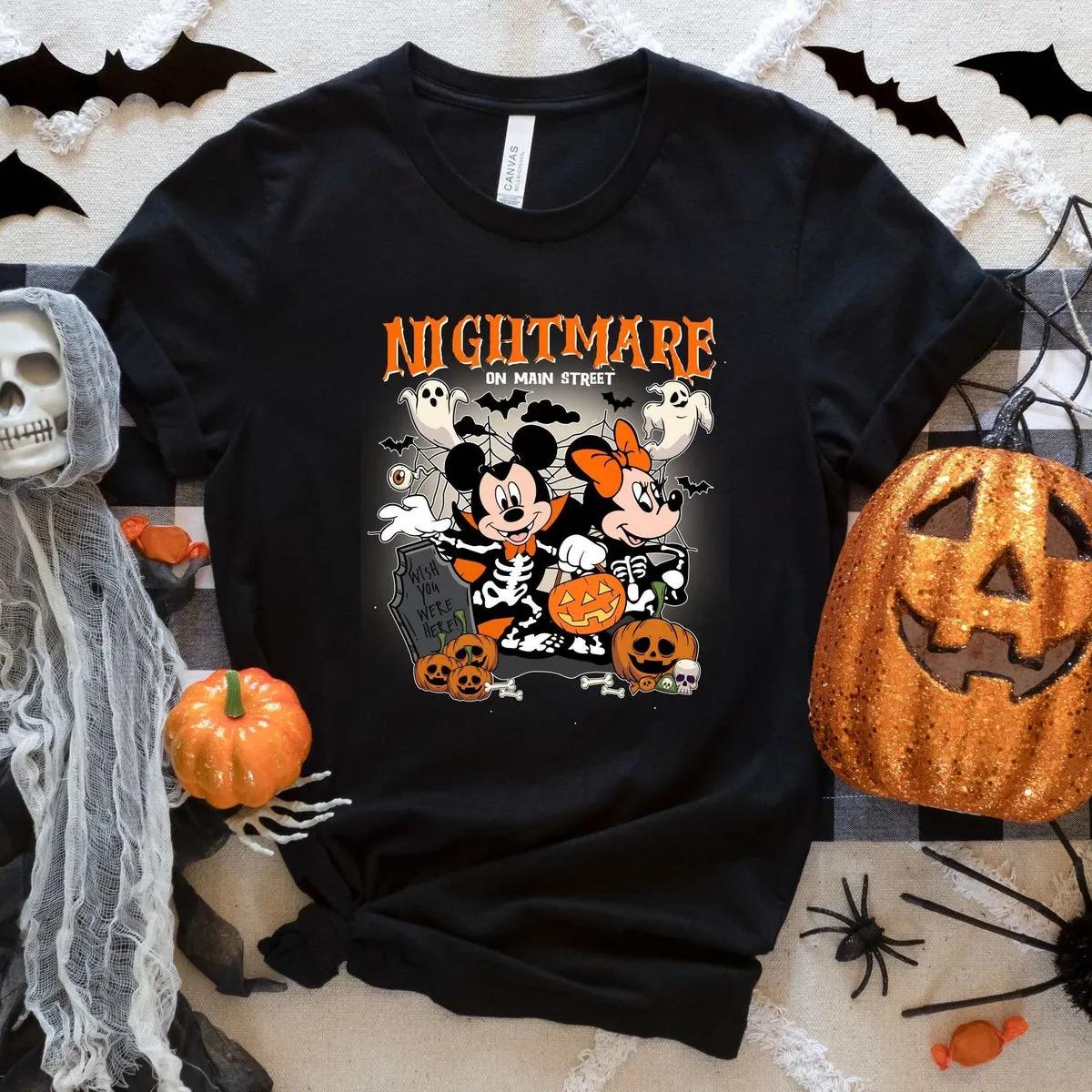 Disney Mickey Minnie Halloween Shirt Nightmare On The Main Streat Tee 1