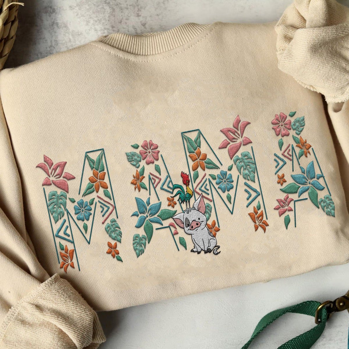 Embroidered Pua Hei Hei Floral Sweatshirt For Moms