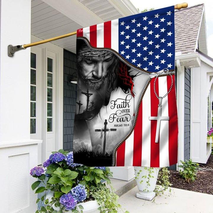 Faith Over Fear Jesus Under American Home Decor Garden Flag