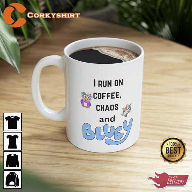 I Run On Coffee, Chaos And Bluey Ceramic Mug